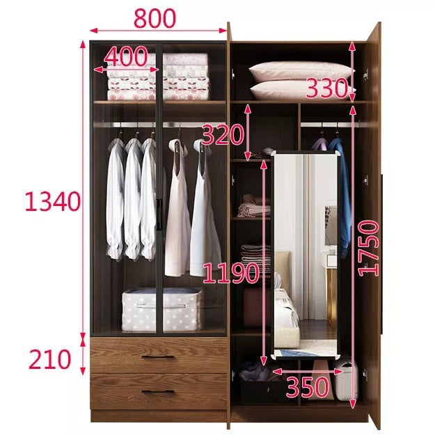 المقاس : عمق 42 سم * عرض 160 سم * ارتفاع 208 سم