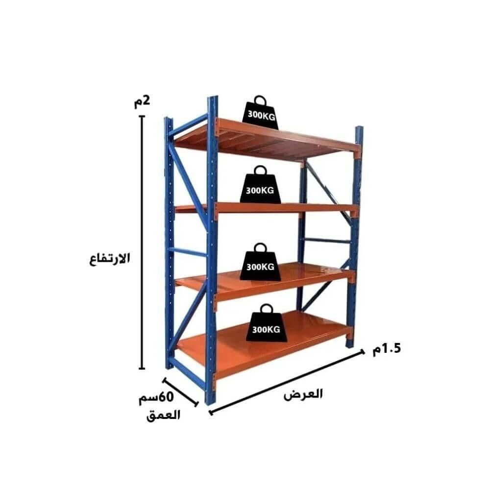 - تصميم متين وآمن: كل وحدة تتكون من 4 أعمدة قوية و4 رفوف واسعة توفر استقرارًا مثاليًا لحمل الأوزان الثقيلة حتى 300 كيلوجرام لكل رف.