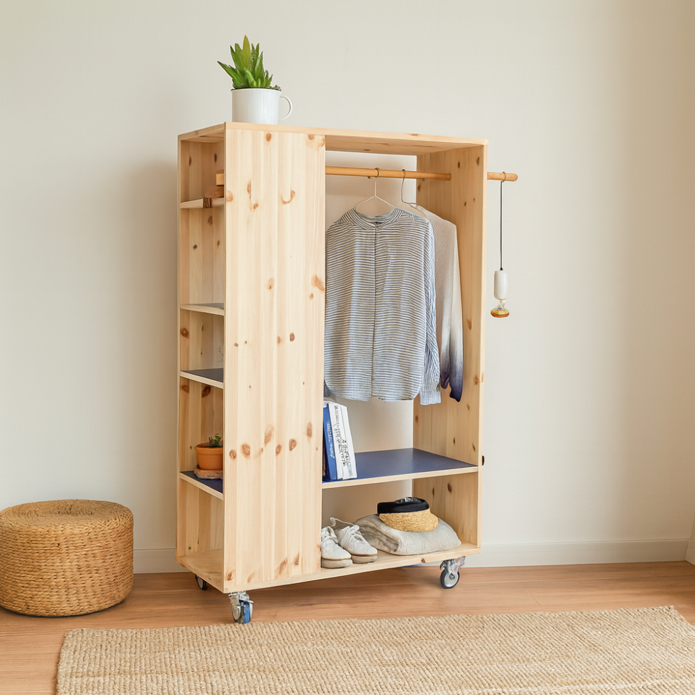 دولاب صغير مفتوح بارفف و علاقة ملابس
