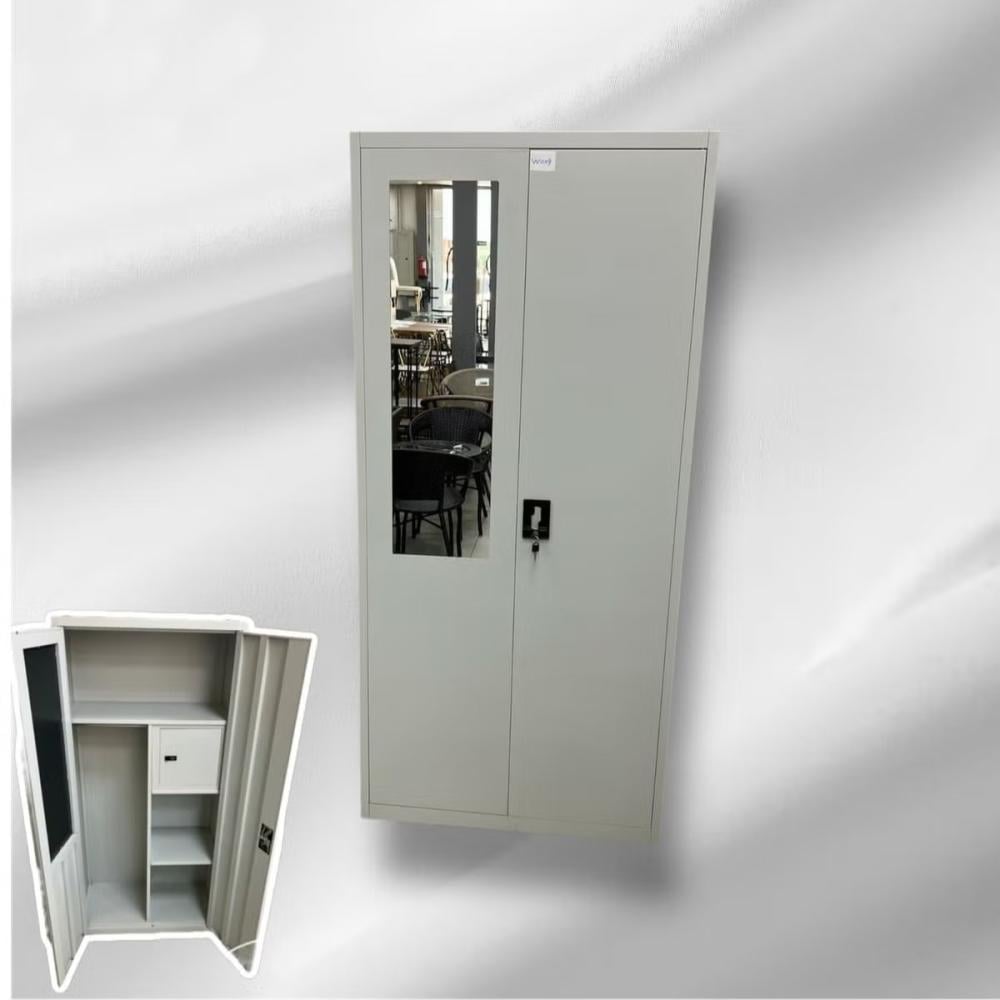 دولاب معدني درفتين مع قفل ومرآة ومساحة تخزين داخلية مقسمة - مقاس 85 × 40 × 180 سم - MS_WD_MTL_0003