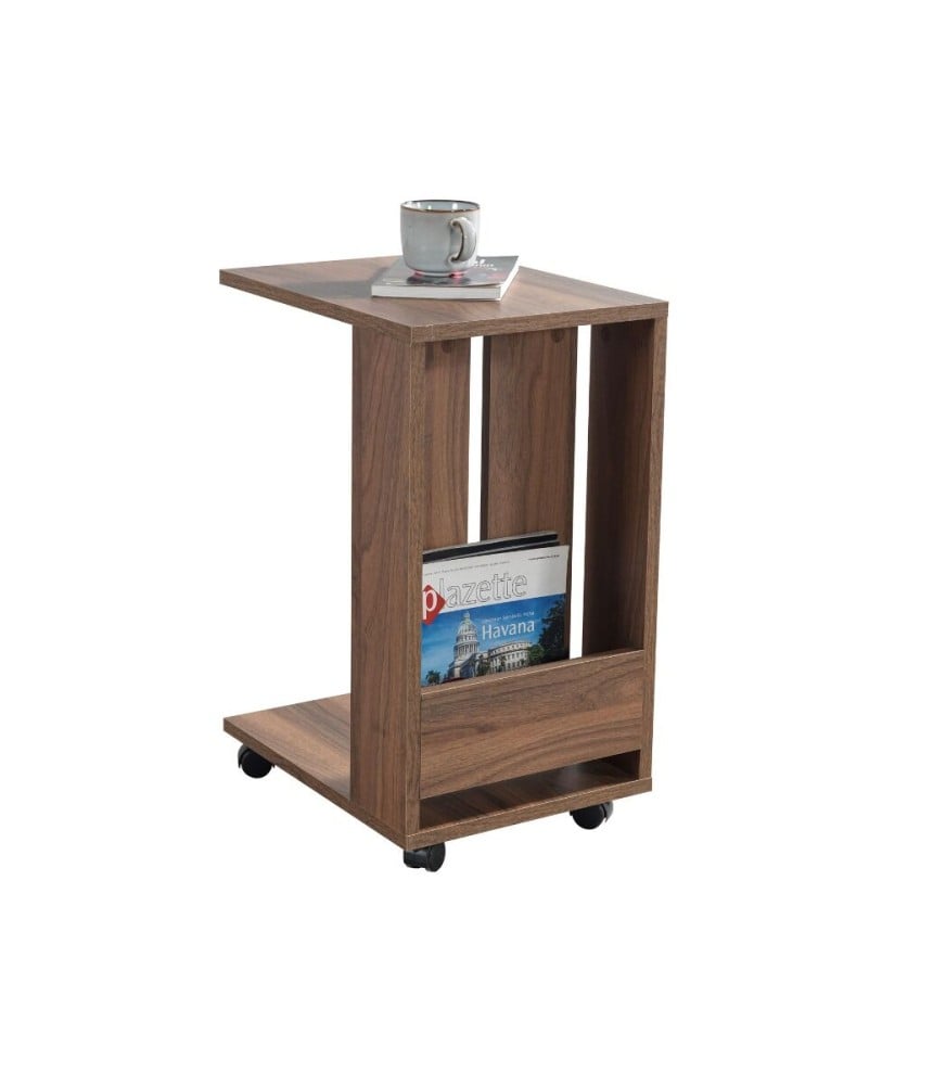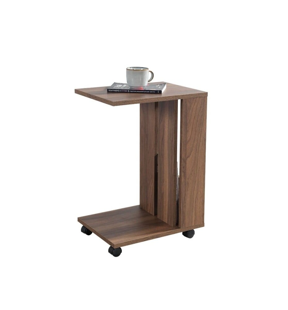 طاولة جانبية مع عجلات - بني