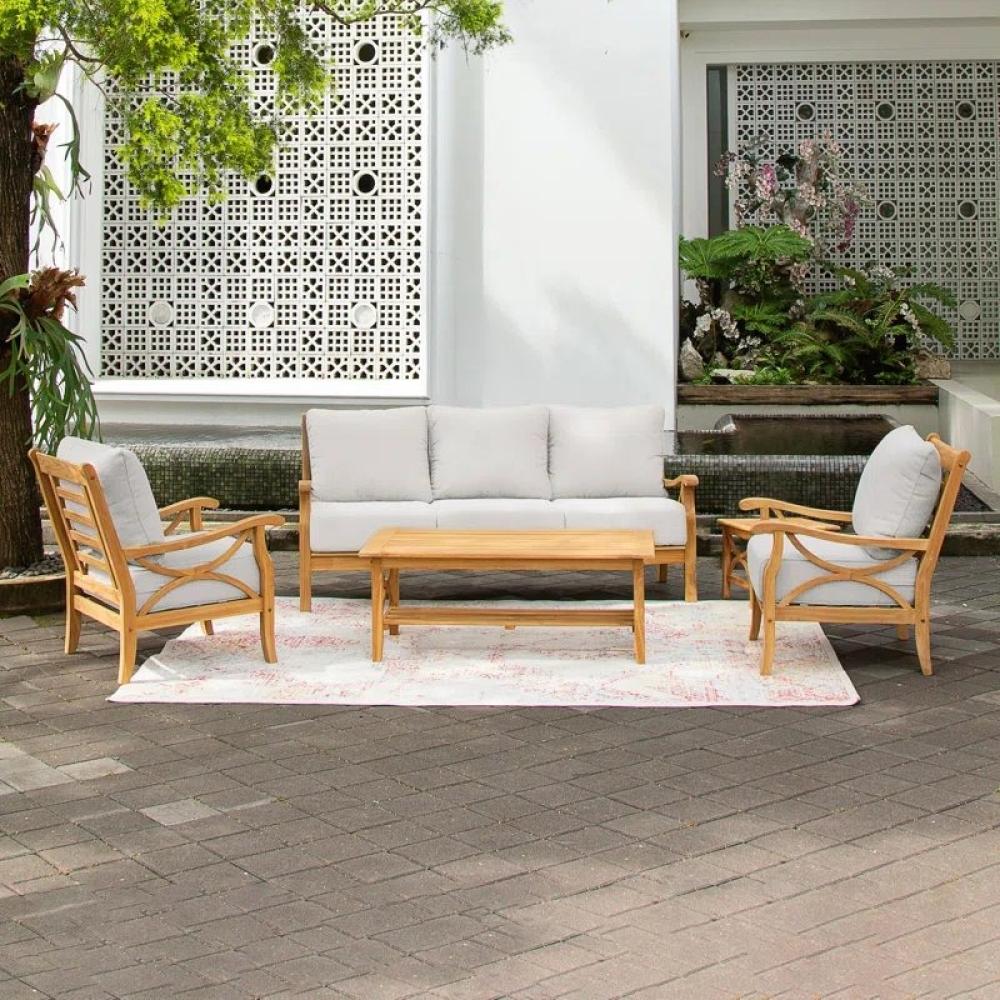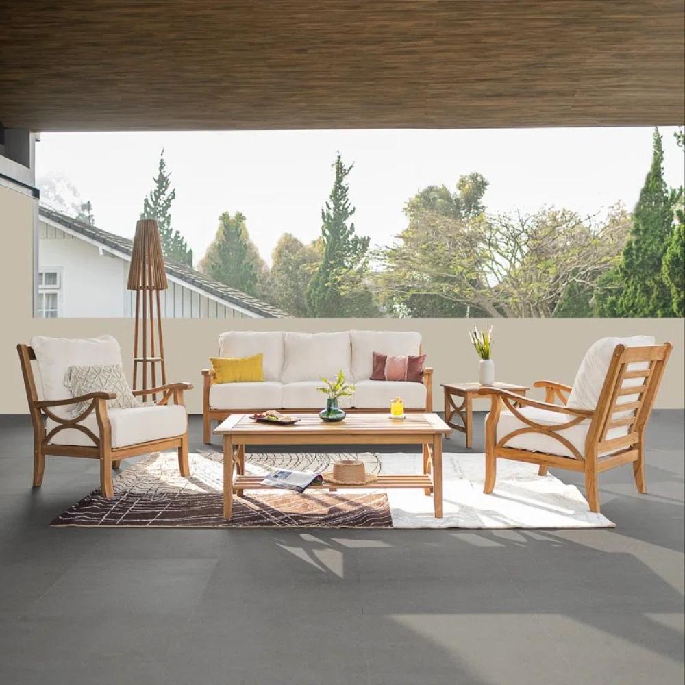 طقم جلسات خارجية من الخشب الطبيعي بتصميم مميز
