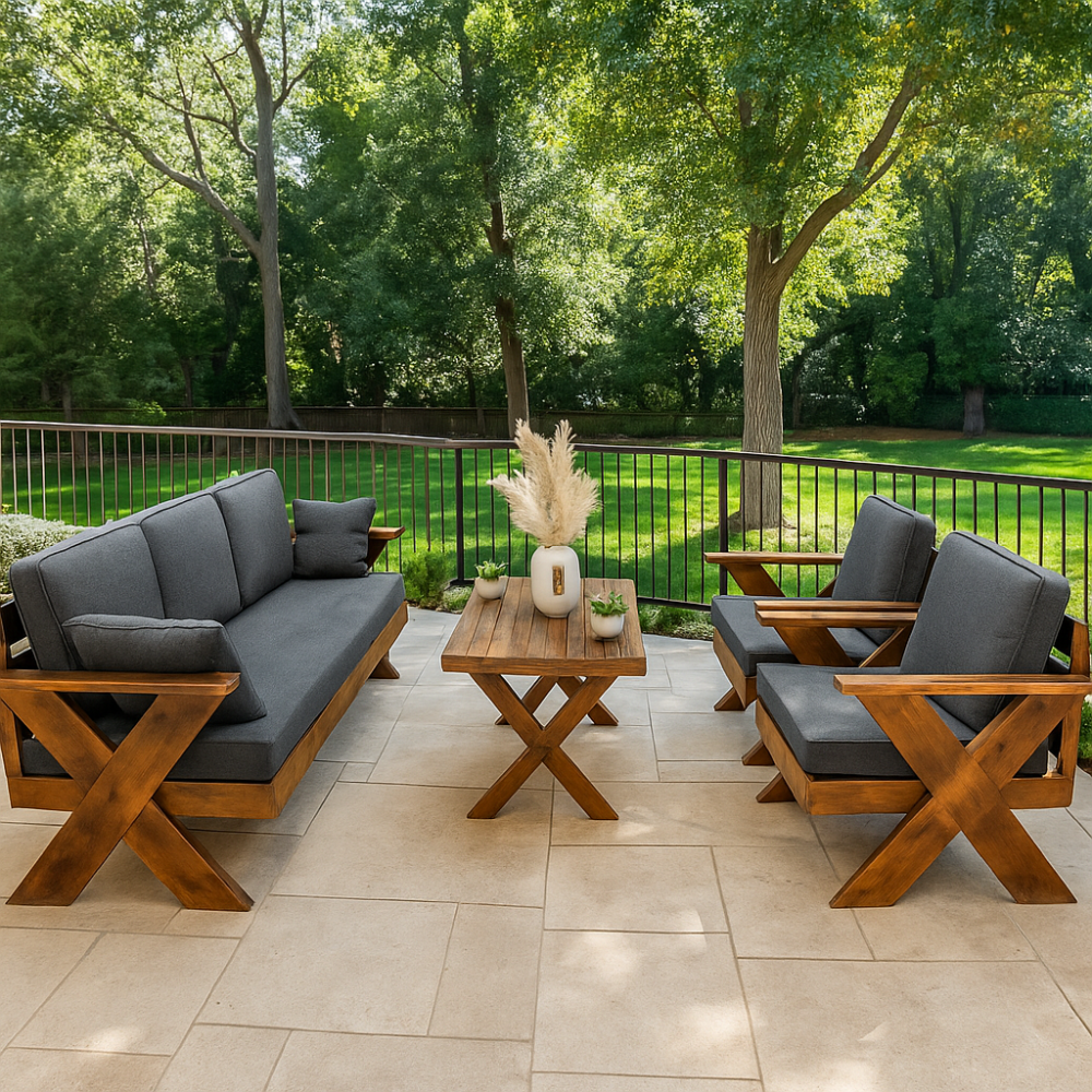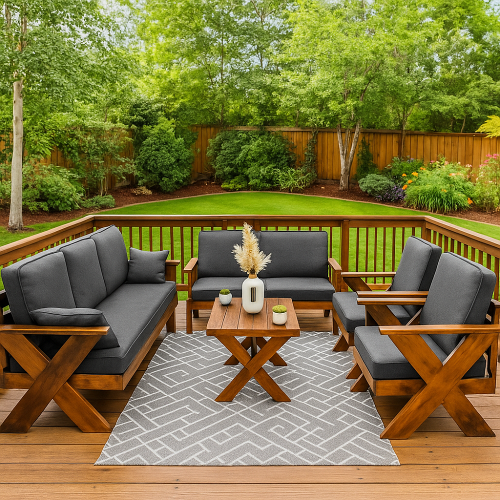 طقم جلسة من الخشب والفرش (7 أشخاص)