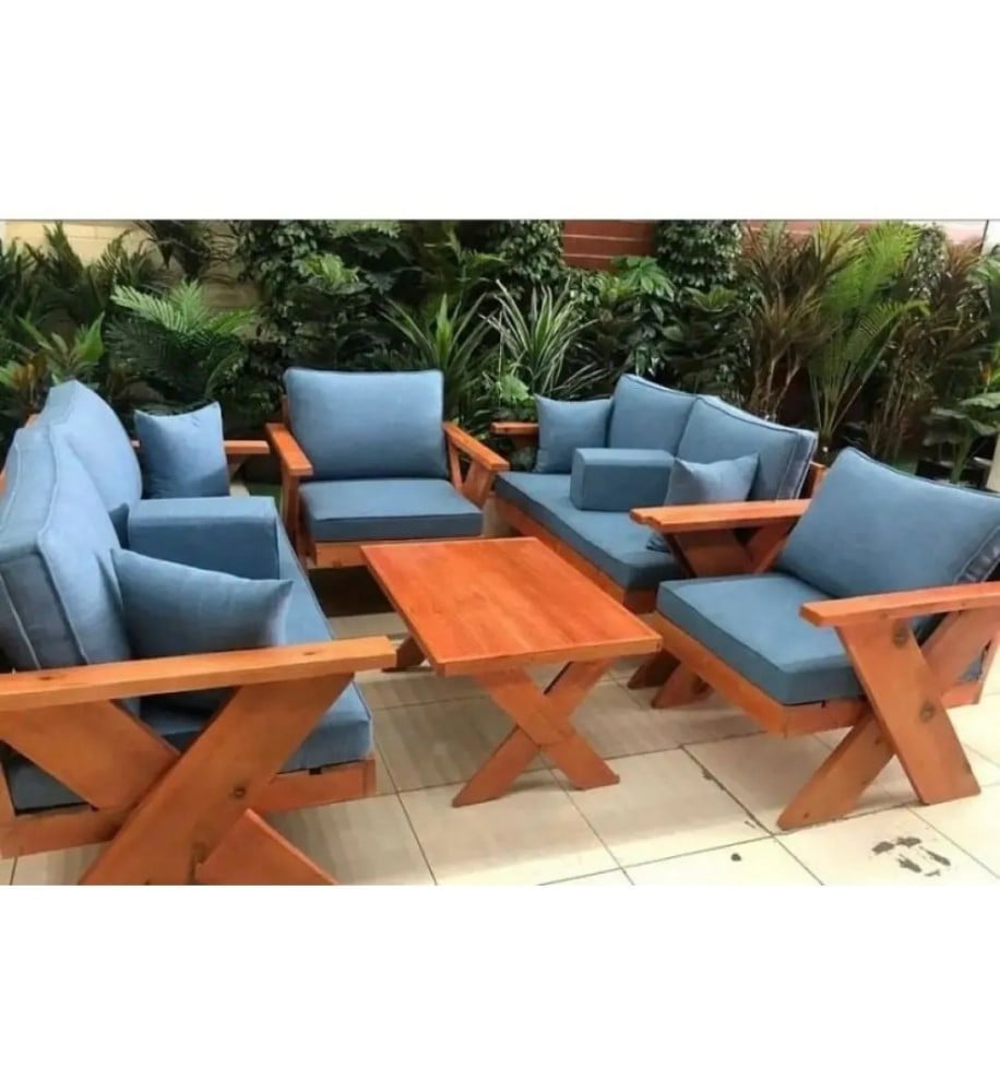 طقم جلسة من الخشب والفرش (7 أشخاص)