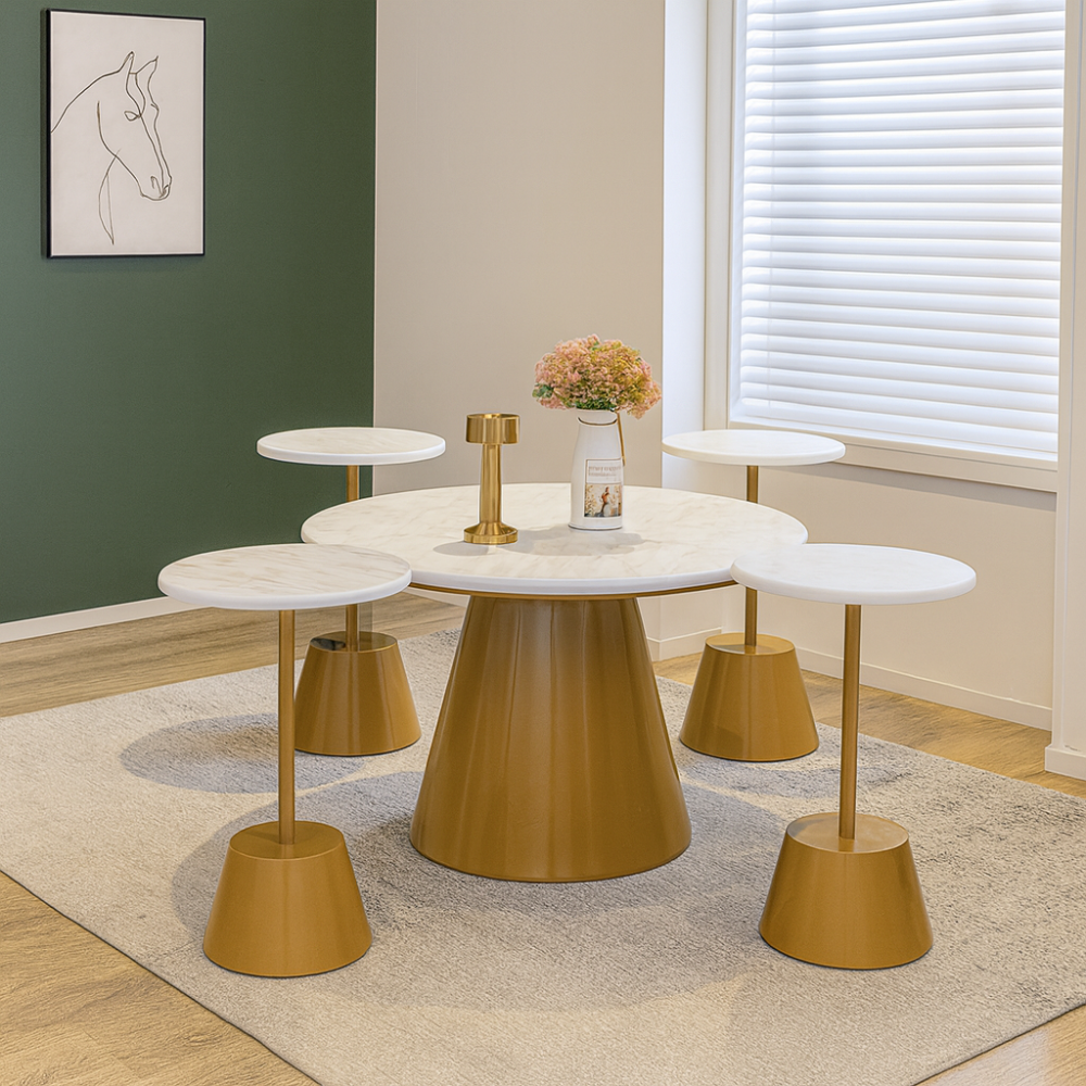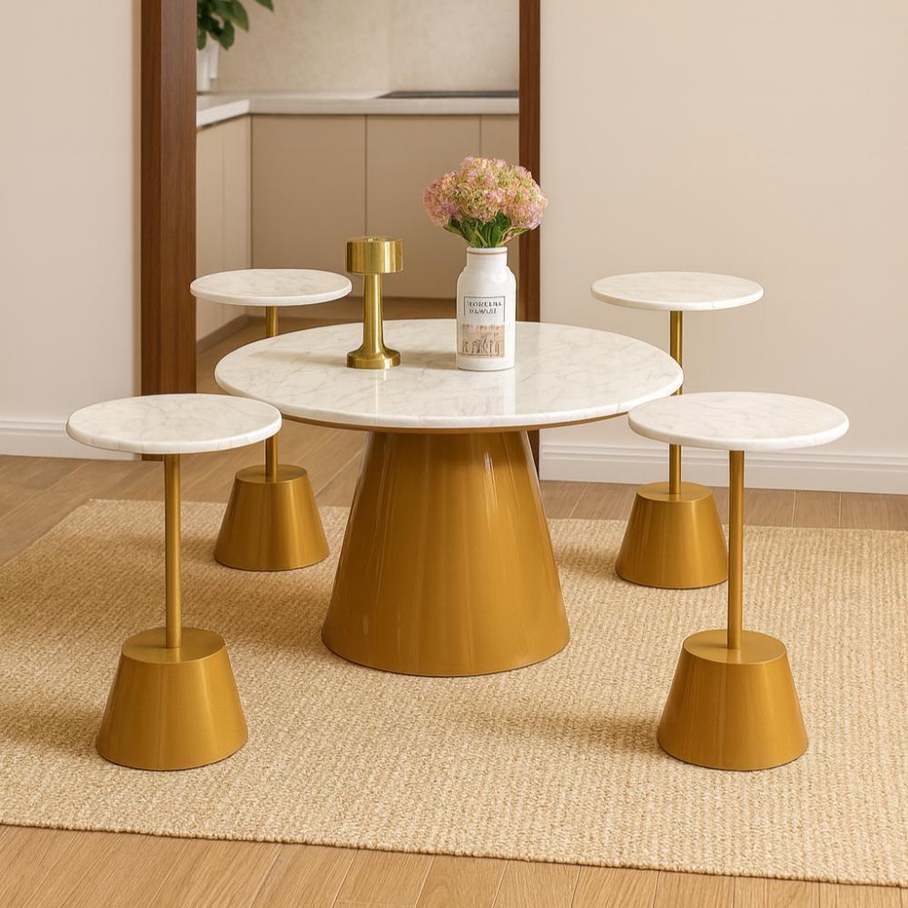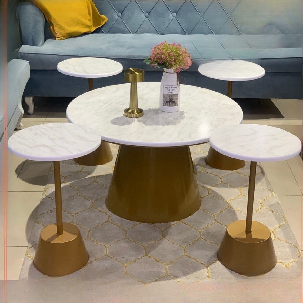طقم طاولة صاج 5 قطع سطح خشب شكل رخام