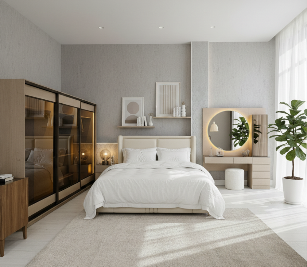 غرفة نوم من مردود السعودية تجمع بين الراحة والفخامة بتصميم عصري وتفاصيل راقية ومبهرة.