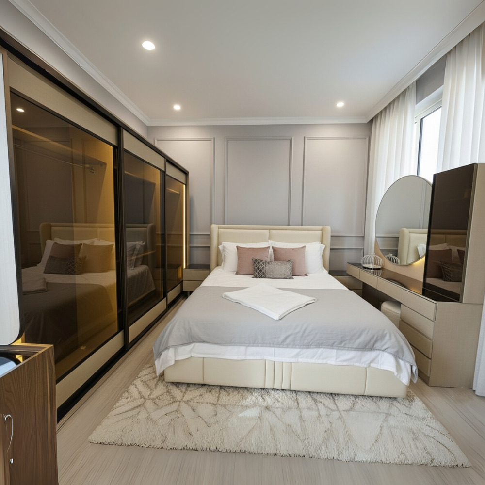 - مساحات تخزين واسعة: مزودة بأدراج وخزائن لتنظيم الملابس والأغراض الشخصية بسهولة.