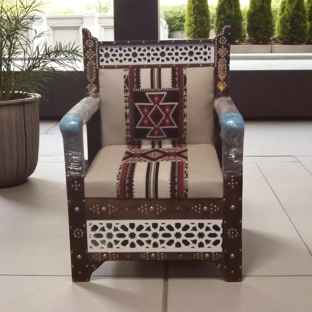 كرسي مركاز بحجم كنبة ثلاثية 75 × 75 × 80 سم (طول × عرض × ارتفاع) تتضمن تنجيد كامل.